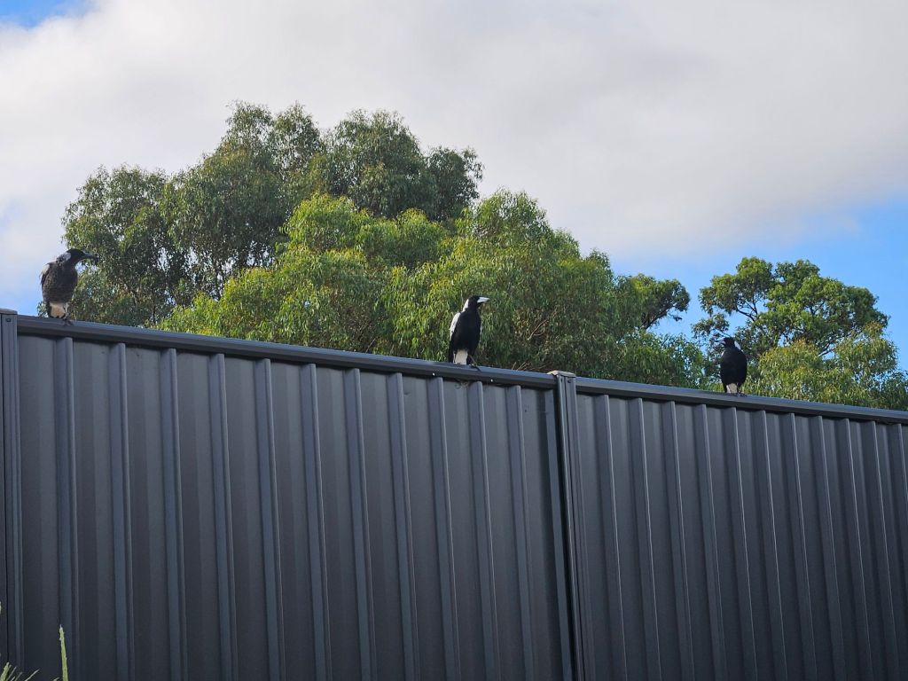 One magpie comes to the fence and he asks. I watch him and chitter to him, and he asks. I watch him and I chitter-chat to him, and he asks.