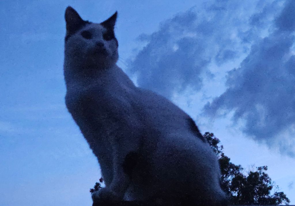 No man is the master of his distant past, thinks yellow-eyed cat, and he sits with his people of eyes that reflect and thinks he must look out for the blue-eyed man whose eyes are like sky. He is not a killer at all, because he is the one who protects yellow-eyed cat, and the ones he loves.